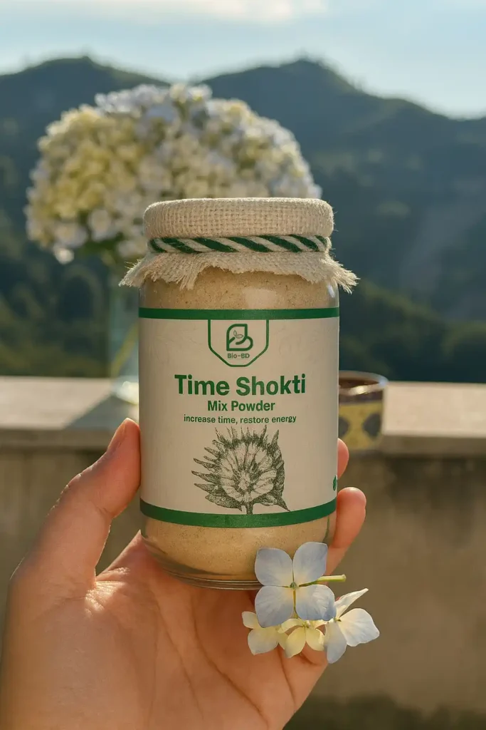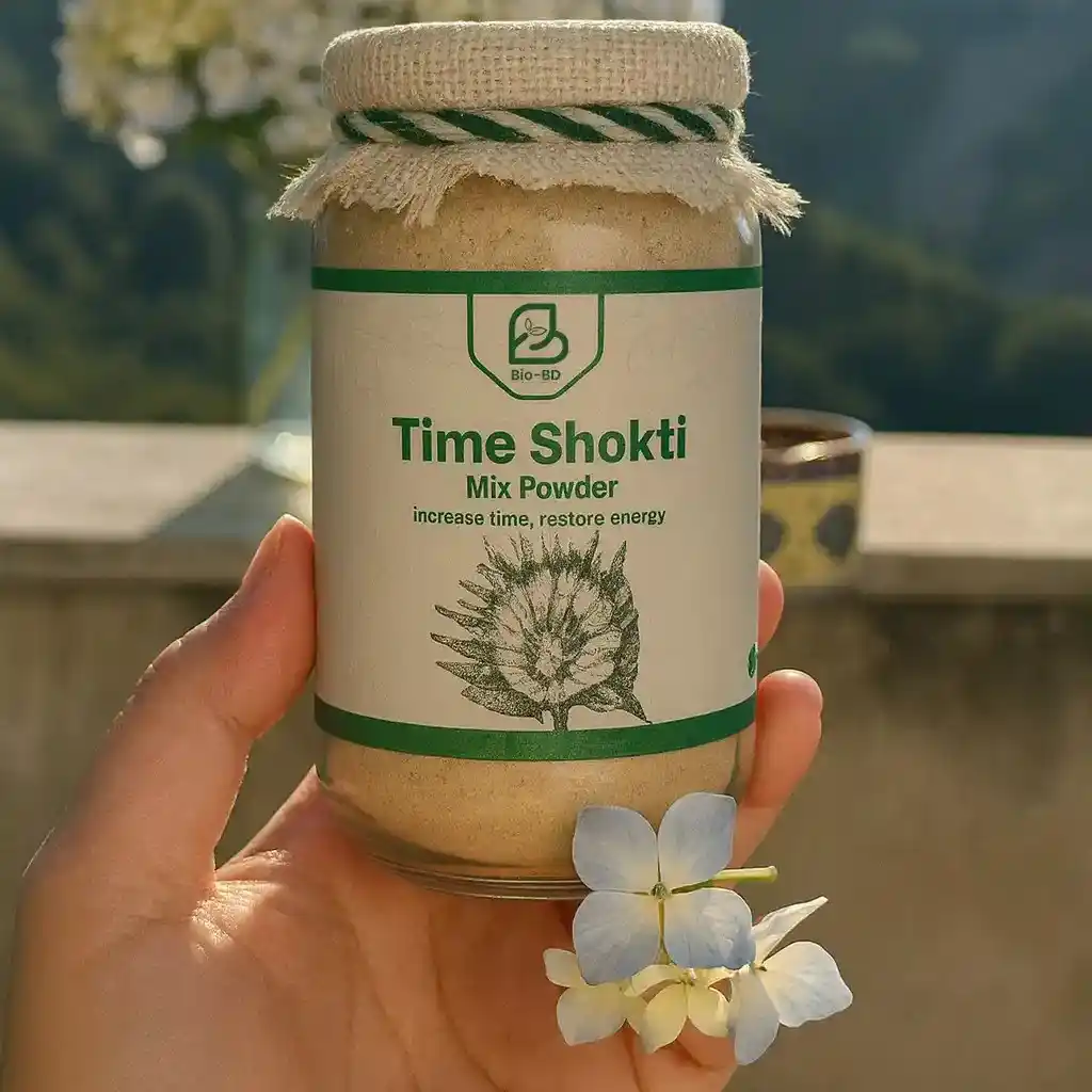 শরীরের শক্তি ও আত্মবিশ্বাস ফিরে পেতে আদর্শ হার্বাল সমাধান। BioBD টাইম শক্তি পাউডার তৈরি হয়েছে ২৯টি দেশি–বিদেশি ভেষজ দিয়ে, যেখানে রয়েছে অশ্বগন্ধা, শতমূল, জিনসিন, শিলাজিৎ ও জাফরানের মতো উপাদান। এটি শারীরিক কর্মক্ষমতা বৃদ্ধি, বীর্য ঘনত্ব উন্নতি এবং মানসিক সতেজতায় কার্যকর।